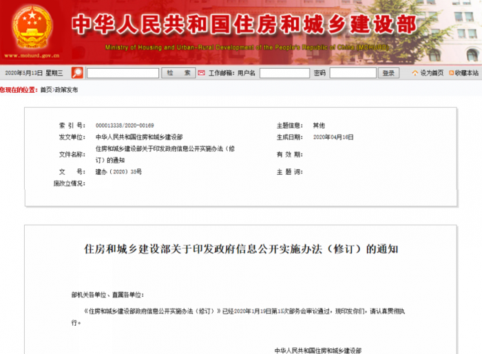 為提高政府工作透明度,建設法治政府,5月12日,住建部發(fā)布《住房和城鄉(xiāng)建設部政府信息公開實施辦法》,規(guī)定,住建部要負責公開由住建部獨立制作、牽頭制作的政府信息。不依法履行政府信息公開職能,情節(jié)嚴重的,對單位直接負責的主管人員和其他直接責任人依法予以處分;構成犯罪的,依法追究刑事責任。