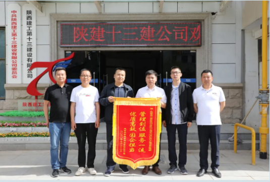 5月26日, 延安水務(wù)投資建設(shè)有限責(zé)任公司工程部部長侯海濤一行,為陜建十三建公司送來一面寫著“管理到位 服務(wù)一流 優(yōu)質(zhì)高效 國企擔(dān)當(dāng) ”的錦旗,并對十三建公司優(yōu)質(zhì)高效服務(wù)給予了高度評價。