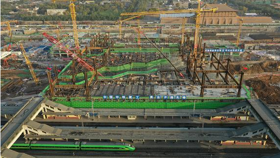密集的腳手架上,施工人員正默契配合;大型基坑內(nèi),機(jī)械轟鳴不止。走進(jìn)正在進(jìn)行改擴(kuò)建的西安火車站,記者看到一邊是既有的鐵軌上火車仍在穿梭,另一邊新建的站房等已經(jīng)初露芳容。